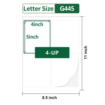 Gemsroyal 4″×5″ Printable Shipping Labels White Matte,4-UP,40 Sheets,for Laser/Inkjet Printers,4×5 Large Mailing Labels,5×4 Large Stickers,Wine Stickers for Bottles,Letter Size
