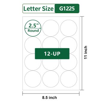 Gemsroyal 2.5 Inch Round Labels Printable,40 Sheets,12 Circles per Sheet,Matte Circle Stickers for Laser/Inkjet Printers,Round Stickers 2.5″,2.5 Circle Labels, Letter Size