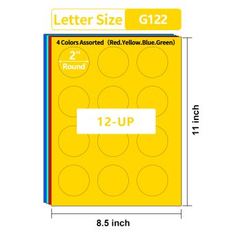 Gemsroyal 2.5 Inch Colored Round Labels,4 Colors Assorted(Red,Yellow,Blue,Green),20 Sheets,240 Tags in Total,Color Coding Labels for Laser/Inkjet Printers,2.5″ Colorful Dot Stickers,Letter Size