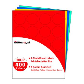 Gemsroyal 1.5 Inch Colored Round Labels,4 Colors Assorted(Red,Yellow,Blue,Green),20 Sheets,400 Tags in Total,Color Coding Labels for Laser/Inkjet Printers,1.5″ Colorful Dot Stickers,Letter Size