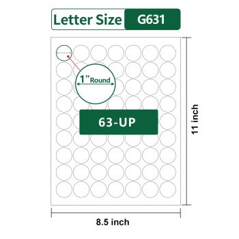 Gemsroyal 1 Inch Round Labels Printable,25 Sheets,63 Circles per Sheet,Round Stickers 1 Inch for Laser/Inkjet Printers,Circle Sticker Labels 1″ Diameter, Letter Size