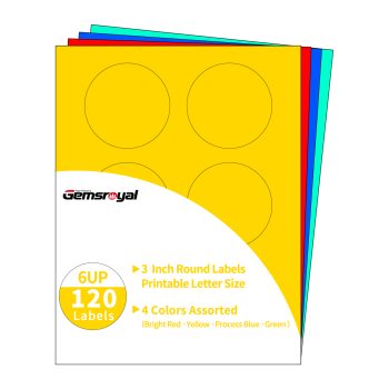 Gemsroyal 3 Inch Colored Round Labels,4 Colors Assorted(Red,Yellow,Blue,Green),20 Sheets,120 Tags in Total,Color Coding Labels for Laser/Inkjet Printers,3″ Colorful Dot Stickers,Letter Size