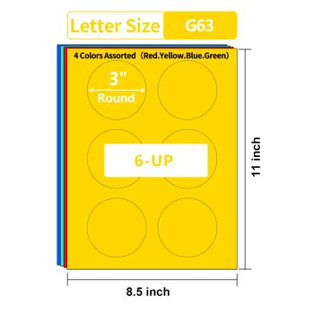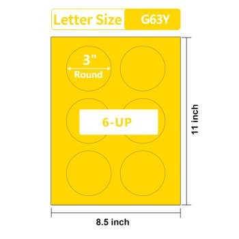 Gemsroyal 3 Inch Yellow Round labels ,20 Sheets,6 Circles per Sheet, Matte Yellow Color Coding Labels for Laser/Inkjet Printers,Colorful Dot Stickers Printable 3″ Diameter,Letter Size