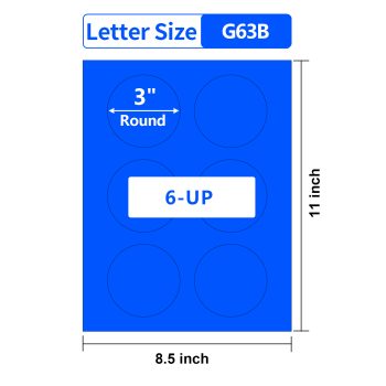 Gemsroyal 3 Inch Process Blue Round labels ,20 Sheets,6 Stickers per Sheet, 3 Inch Blue Color Coding Labels for Laser/Inkjet Printers,Colorful Dot Stickers 3″ Diameter,Letter Size