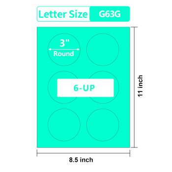 Gemsroyal 3 Inch Green Round labels ,20 Sheets,6 Circle Stickers per Sheet, 3 Inch Green Color Coding Labels for Laser/Inkjet Printers,Colorful Dot Stickers 3″ Diameter,Letter Size