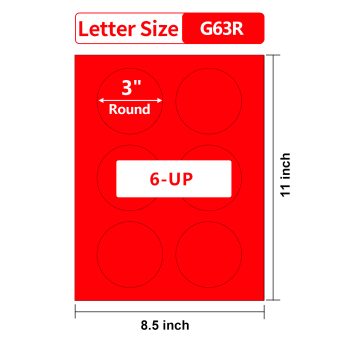 Gemsroyal 3 Inch Bright Red Round labels ,20 Sheets,6 Red Circle Stickers per Sheet, 3 Inch Red Color Coding Labels for Laser/Inkjet Printers,Colorful Dot Stickers 3″ Diameter,Letter Size