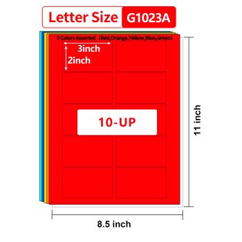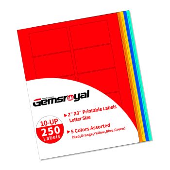 Gemsroyal Colored 2″×3″ Labels Printable,5 Colors Assorted(Red,Orange,Yellow,Blue,Green),25 Sheets,Color Stickers for Laser/Inkjet Printers,Colorful Product &Shipping 3×2 Labels, Letter Size